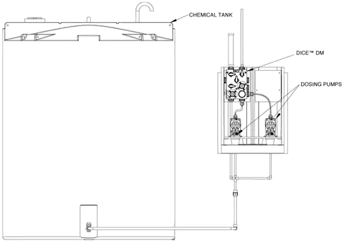 With the DICE™ DS suction lift configuration, the pressure relief valve is routed back directly to the chemical tank.